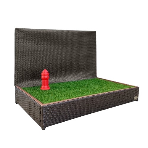 The Pee Pee Panel acts as a shield to protect furniture from pee splashes if your dog lifts its leg and the pee goes over the Porch Potty. The Pee Pee Panel is also beneficial for outdoor balconies to prevent pee from going through the gated balcony area. Or, the panel can be added if your dog needs more privacy while doing their business.
